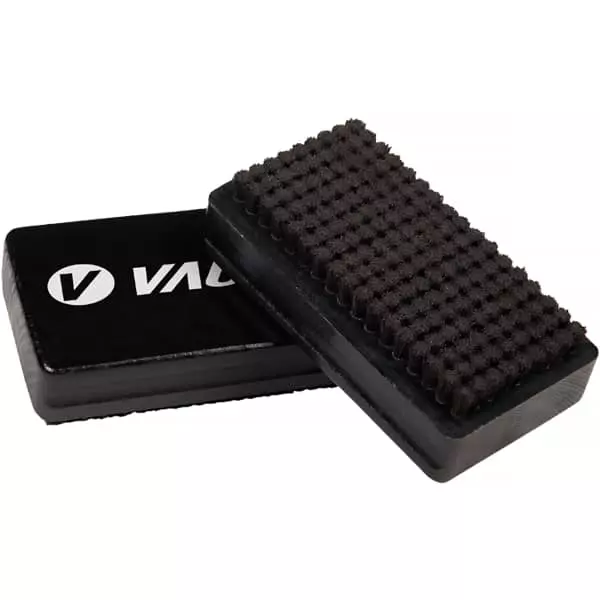 Une brosse en crins de cheval de chez VAUHTI pour l’entretien de vos semelles de ski.