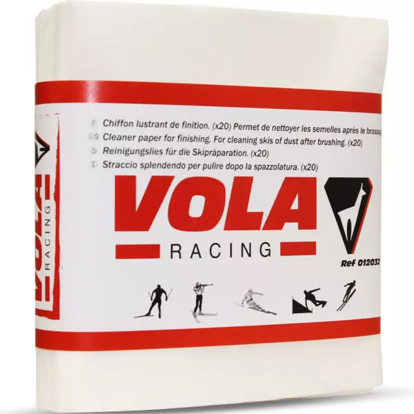 Le CHIFFON DE NETTOYAGE X20 de VOLA est un pack de 20 chiffons lustrants permettant de retirer les poussières résiduelles persistantes sur la semelle de vos skis après le passage de la brosse.