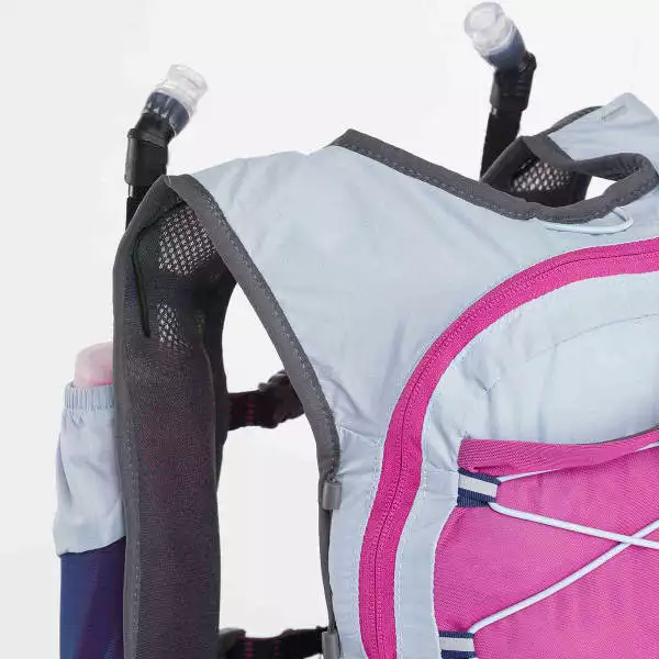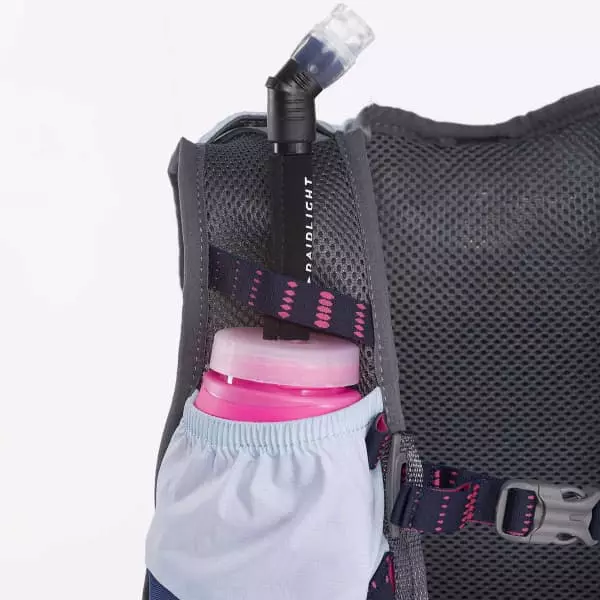 Doté d’un grand compartiment horizontal spécifique pour les poches à eau de 1,2L, ce sac à dos d’hydratation limite les ballottements durant l’effort tout en facilitant l’accès et le remplissage de celle-ci. Sa conception « proche du corps » permet à la sportive de bénéficier d’une stabilité exceptionnelle grâce à un maintien et un système de compression performant. Des emplacements portes-bidons sont ajoutés au niveau des bretelles pour ranger les EazyFlasks ou R-GO Bottles RaidLight. De plus, leur positionnement facilite leur utilisation pendant l’effort.